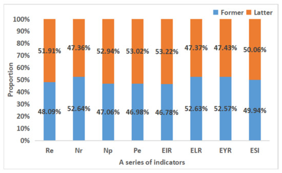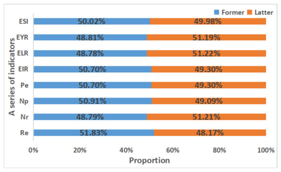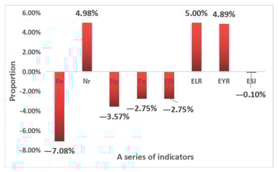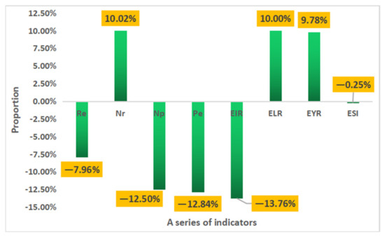 In addition, before emergy calculation, the baseline should be selected. To date, there are five types, which are 9.44 × 1024 sej/year [16], 9.26 × 1024 sej/year [39], 15.83 × 1024 sej/year [40], 15.2 × 1024 sej/year [41], and 12 × 1024 sej/year [42]. This paper uses the latest emergy baseline (12 × 1024 sej/year) for the emergy calculation.