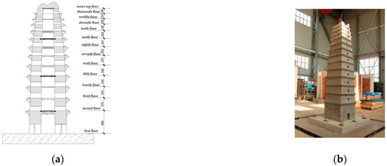 In recent years, scholars worldwide have conducted extensive research on the seismic protection of masonry ancient towers [3,4,5]. According to their seismic response characteristics of ancient towers, they put forward suggestions to strengthen their seismic capacity, including tower hooping [6], crack bonding [7], adding a circle beam and constructional column [8], the use of high ductility fiber-reinforced cement-based composite reinforcement [9], and the installation of foundation isolation [10]. However, the traditional seismic protection methods are not in agreement with the minimum intervention principle of ancient building protection because of their excessive disturbance of the structure itself. Therefore, structural vibration control has been proposed as a new theory and method to effectively reduce the seismic response of structures, and its use has been verified.