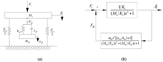 A simplified model diagram of the vibration reduction system is added to the single-degree-of-freedom system of the i-th Mode. (a) Mechanical model. (b) Control flow chart.