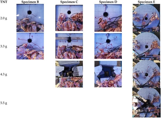 - Zhao, Y.T.; Hu, K.; Liu, S.L.; Kou, W.X. Cratering effect for a contact explosion at the joint of concrete structures. J. Vib. Shock. 2021, 40, 245–251. [Google Scholar]