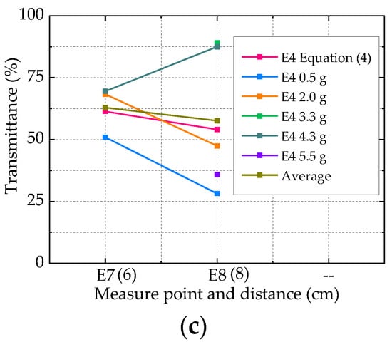 | Transmittance (%) | Electric Charge from Specimen E | Strain from Specimen E | Electric Charge from Specimen A | Strain from Specimen A | Average |