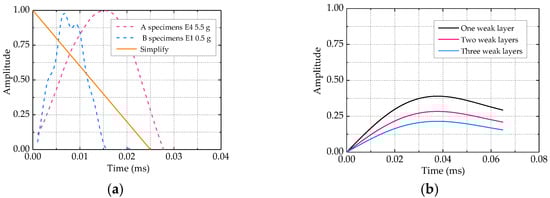 - The weak layer has good attenuation performance when it comes to the explosive stress wave, and the transmittance of one weak layer is 43.37%. When several weak layers are close to each other, there are reflections and refractions between layers. The transmittance mainly decreased in the first weak layer. The transmittances reduced by the second and the third weak layer are not obvious, that is, about 80.97% and 70.84%, respectively.