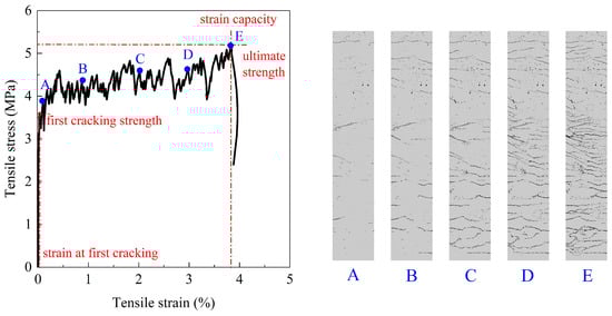 A typical uniaxial tensile stress-strain curve of ECC [].