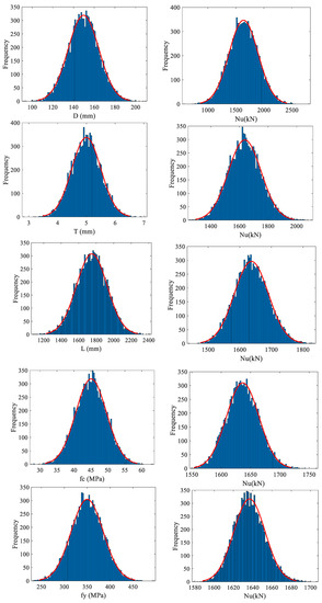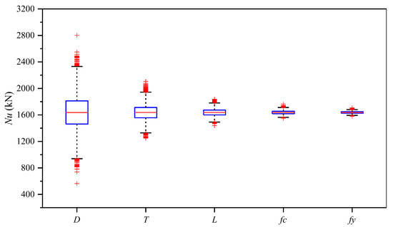 - Among the five design parameters affecting the bearing capacity of the CCFST column, diameter is the dominant factor, followed by steel tube thickness, length, compressive strength of concrete, and yield strength of steel. Except for the length, the increase of the other four parameters plays a positive role in the axial capacity, and the fluctuation of diameter in a random environment can lead to the variation of bearing capacity beyond its own variation range.