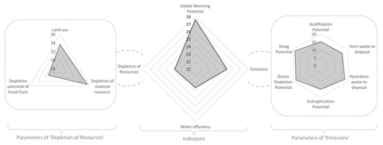 It is important to define indicators and parameters since they are key components of LCIA. The purpose of an indicator is to provide useful information regarding social, physical or economic systems, often through numerical data [21,22]. Indicators can be very useful in describing the system state, identifying state changes as well as demonstrating cause-and-effect relationships. Besides their mutual differences, indicators typically address important issues such as lifecycle costs, resource consumption, comfort, environmental pressure, indoor air quality and energy and water efficiency [23]. Considerable research has gone into identifying and establishing indicators of environmental sustainability. LCI indicators are well established in the research and the practice of life cycle assessment, and they provide a comprehensive account of the environmental sustainability of a material. These indicators are operationalized and represented through sets of impact parameters. A parameter, while acting as a sign or a signal, transmits an intricate message from numerous possible sources in a simple, utile manner. Hence, parameters are about simplifying the behavior of something, quantifying it, and communicating it. The following is a brief account of the LCIA impact parameters that can represent different indicators [24]: