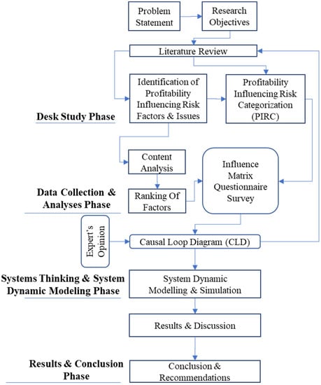 Further, comprehensive and in-depth knowledge of the complexity and the integration of PIRFs is needed to analyze the dynamic effects on profitability-influencing risk categories (PIRC). Such assessment of PIRFs, and their categorization into PIRCs, is crucial for the survival of construction firms engaged in construction businesses [7,8]. This approach provides a unique angle, with critical insights into the factors influencing construction profitability and the associated risks. The link between risk to profitability is rarely addressed in the literature. The risk-based profitability model is a way to explore the causation of various issues in construction projects. Accordingly, it becomes important for construction firms to review failures in terms of encountered risks in the past, taking corrective measures, and focusing on future profitability [9]. This is pivotal to the organizational continuous improvements and growth in the era of globalization.
