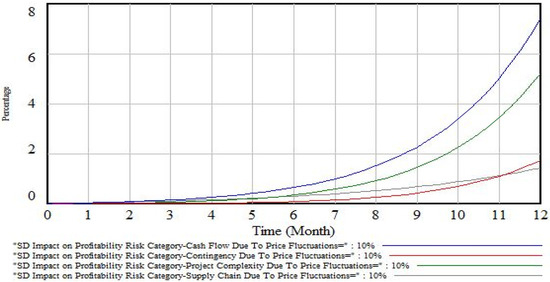 Figure 10. Dynamic integrated impacts on profitability risk categories over time (price fluctuations = 10%).
