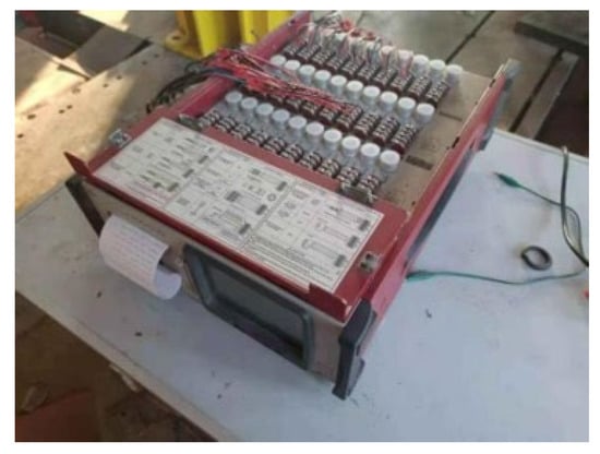 In this experiment, a TDS-530 static data acquisition instrument was used for the data acquisition. When the fatigue number reached the specified value, the deflection of the bridge slabs and the strain of steel bar were collected. The test data acquisition equipment are shown in Figure 8.
