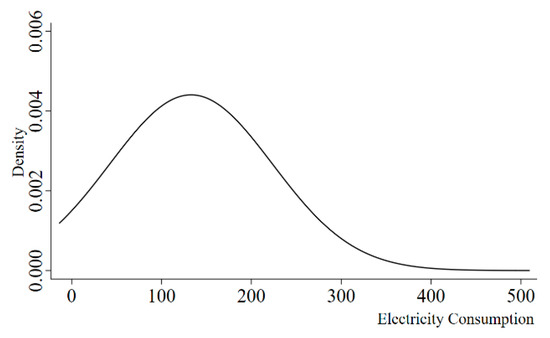 The explanatory variable of this paper was electricity consumption (). The data index came from the problem in CGSS data: “Average monthly electricity consumption”. We converted the average monthly electricity consumption into annual electricity consumption and took its natural logarithm as the explanatory variable.