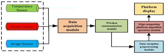 The sensors in the evacuation system are shown in Figure 3. It consists of temperature sensor, smoke sensor, humidity sensor and image sensor. The image sensing is based on a CCTV camera and is used for flame image identification, while the smoke and temperature sensors are used to collect the smoke and temperature parameters in order to assist the fire monitoring. When a fire occurs, the sensors detect the abnormal data, processed by STM32 MCU onboard the IoT circuits, and use wireless communication module to transmit the data. The edge computing platform receives the data and the system evacuation algorithm is finally run on the edge computing platform.