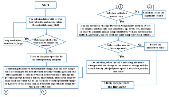 - When all the people in the building are evacuated, the evolution process is stopped. The flowchart of this process is shown in Figure 10.