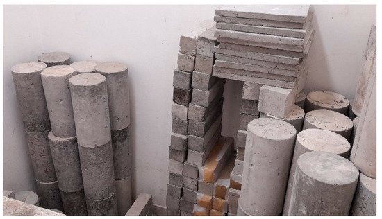The compressive strength test, the ultrasonic pulse velocity test, and the elastic modulus of concrete were carried out on the cylindrical specimens, while the prismatic specimens were used to measure the tensile strength by four-point bending. The thermal conductivity values were determined using parallelepipedal specimens.