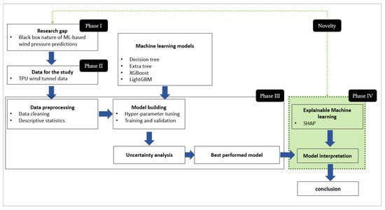 In addition, hyperparameters are required to optimize all four models. All required hyperparameters of four tree-based models were chosen based on a grid search. Optimized model predictions were compared using performance indices. Subsequently, we followed the model explanatory process to elucidate the causality of predictions. Figure 2 summarizes the workflow of this study. The methodology shows the existing research gap in the wind engineering field. Therefore, the authors strongly believe the novelty-explainable ML- would advance the wind engineering research community.