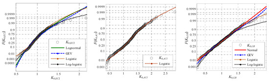 After the samples of Kpb are obtained, the PDF of Kpb can be obtained by fitting, and then the PDF of Vb can be obtained according to Equation (2). However, the number of samples of the span capacity Vs is very limited. Thus, the PDF of Vs cannot be determined by this method.