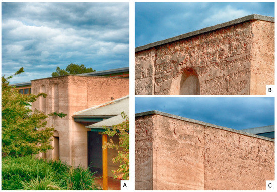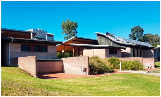 - McInerney, C. Thurgoona Campus. Specification for Student Association Faciliities, Rammed Earth; Office of Design, Charles Sturt University: Wagga Wagga, Australia, 2001. [Google Scholar]