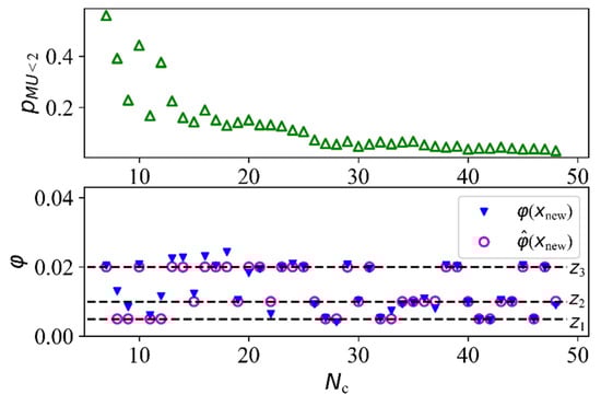 where denotes the number of points whose MU value is less than 2 in the candidate sample set. When is less than a certain tolerance ζ, the sampling of new experiments can be stopped. ζ is taken as 0.02 in this research.