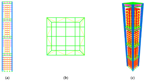 Finite element model of MFVCS. (a) Elevation View. (b) Plan View. (c) 3D View.