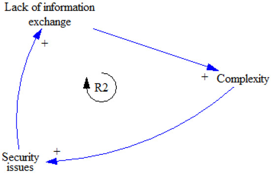 The loop (R2) shows that ‘Lack of information exchange’ increases complexity, leading to a corresponding increase in security issues, as evident from Figure 5. Thus, an increase in security issues increases the lack of information exchange in CSCs.