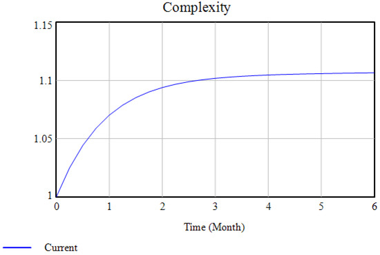 The graph of ‘Complexity’ shows a compounding trend that implies that factors in the loop play a positive role, as shown in Figure 14. ‘Complexity’ is at a minimum at first, but with time, it increases. This increase is rapid in the initial days and then slowly eases with time till the end of the simulation period. The inflow of ‘Complexity’ consists of lack of information exchange, trust and cooperation, and top management support, which increases the complexity of the system. In order to reduce ‘Complexity,’ the impact of these variables needs to be addressed in CSCs.