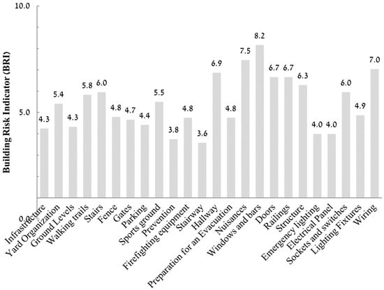 Mean Building Risk Indicator (BRI) in educational facilities sample according to building systems.
