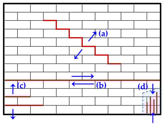 The aforementioned parameters (i.e., panel geometry, axial stress level and material strength and quality) play important roles in determination of the in-plane failure modes of URM panels. In this study, four major in-plane failure modes observed under seismic action are considered, which are diagonal tension failure, sliding shear failure, rocking (joint tension) failure and toe-crushing failure, as schematically shown in Figure 4.