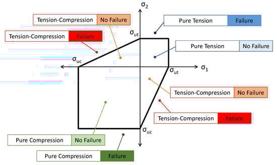 According to the lower-bound limit analysis, none of the points on the wall should violate the yield function. Mohr–Coulomb failure criterion is applied to the stress states at each node of the wall, in accordance with the predefined damage patterns that were explained in the previous section. Consequently, there are three cases that describe the ultimate stress states during failure of a brittle material on Mohr’s Circle envelope: