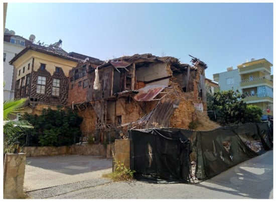 The photographs of historic buildings used in this paper were personally taken by Yunus Konbul in June and July 2019 (except the historic building on Figure 16 which is taken from Google Street View dated July 2014 and the photograph of the construction was taken in January 2020 by Yunus Konbul); the satellite images were obtained from the HGM Küre service of the national mapping agency of Turkey []; the cadastral information and development plans were obtained from the official websites of General Directorate of Land Registry and Cadaster [] and the Municipality of Alanya [] which are all non-confidential online sources. The satellite images and development plans are oriented towards the North.