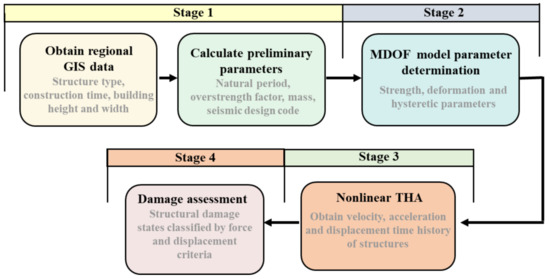 - Xiong, C.; Lu, X.; Lin, X.; Xu, Z.; Ye, L. Parameter Determination and Damage Assessment for THA-Based Regional Seismic Damage Prediction of Multi-Story Buildings. J. Earthq. Eng. 2017, 21, 461–485. [Google Scholar] [CrossRef]
