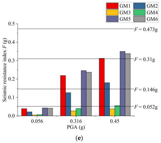 where is the design spectral acceleration at the first period of the structure , and is the overstrength factor. Design spectral acceleration is taken as the design earthquake load for structures; thus, can represent the design strength level of the structure to some extent. In fact, structures are usually designed with redundancy in mind, so the actual strength level is higher than the design strength level. The actual strength level of the structure can be represented by the product of the overstrength factor and the design spectral acceleration , as shown in Equation (2).