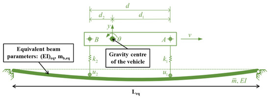 In [26,27], four basic VBI models are shown, from the simpler moving vertical load or mass model to the more complete sprung mass and suspended rigid beam model. These models provide analytical solutions to be used for preliminary and reference results.