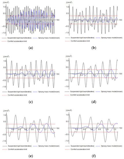 In a more complete model, the contribution of the wheel should be considered [34,35,38]. However, the suspended system (i.e., vehicle suspensions k1, k2) is predominant in terms of the frequency with respect to the non-suspended system (i.e., tires) of ~7 times, as shown in the literature [18,29]; therefore, in this study, the parameters mv and fv can adequately represent the whole vehicle system.