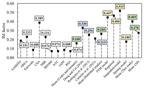 The mean IM from this study (i.e., IM = 0.403) is consistent with the literature; for instance, in [5], for α = 0.95, the mean IM is 0.433, and in [52], for a bridge with similar characteristics to the studied bridge in this paper, an IM = 0.40 was proposed.
