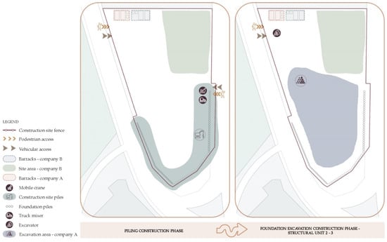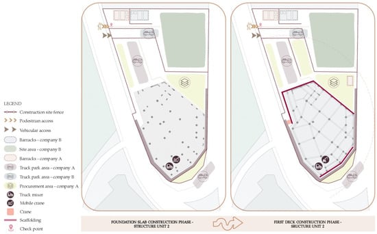 After the execution of the excavation, the areas of the two sub-sites, the accesses, the machine parking areas, and the material supply areas were delimited. After this phase, the assembly of the tower cranes was planned but, due to a lack of communication and coordination between the two companies, this phase underwent a time variation leading to the assembly of only one crane by Company A. At the same time, the COVID-19 pandemic caused the suspension of construction sites throughout Italy from March to June 2020. During these months, the safety and coordination plan and the related operational safety plans were updated to comply with anti-COVID regulations, in accordance with the requirements of the Ministry of Health. The inadequate organization of the various working sectors of Company B has caused a slowdown in the achievement of the deliverables set out in the Gantt chart. Therefore, the lack of a detailed and advanced scheduling has not allowed the monitoring of the activities of yard, provoking deviations of time more and more important. All this has generated the impossibility to intervene and carry out immediate corrective actions. In fact, during the realization of the foundation slab there have been substantial changes in the project related to delays of the company B. Initially the project foresaw the realization of the entire polyfunctional building composed by the three structural units 1,2,3. Due to the lack of organization between the two companies operating in the same site, it was not possible to manage the various activities and consequently, there were interferences between the accesses. So, it was decided to start the foundation slab only for the structural unit 2 and the related elevation of the structure (