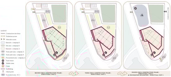 The site was divided into two sub-sites: the north-eastern part was carried out by Company B (structural unit 4) and the remaining part by Company A (structural units 1-2-3).