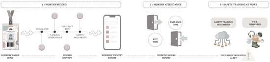 21] created a web application that relies on continuous feedback to monitor construction site activities, promoting collaborative work. Through sharing workers’ information, stakeholders can monitor costs and productivity.