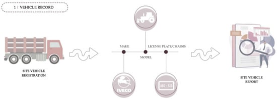 Worksite vehicles control: flows relating to the presence of vehicles in the worksite are generated and through scanning and then uploading to the platform, the documents are verified;