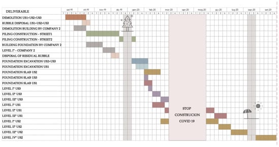 A serious problem was found linked to the management of interference between the two companies operating in the same lot. The inadequate organization of the various work areas caused a slowdown in the achievement of the deliverables set out in the Gantt chart. Therefore, the lack of a detailed and advanced scheduling did not allow the monitoring of the site activities, causing increasingly significant time deviations (