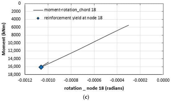 Moment rotation curve for nodes (a) 28, (b) 20 and (c) 18.