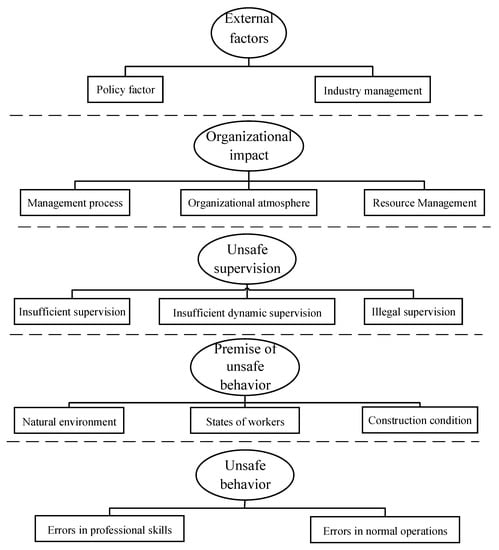 Considering the current situation of China’s construction industry and the characteristics of prefabricated building construction, the following improvements are made on the basis of the original HFACS frame [46,47]: