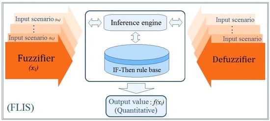Figure 3 shows that the FLIS established by applying fuzzy logic theory has completed the parameter definition of Table 6. FLIS has the function of quantitative decision analysis. The above parameters and inference rules cannot be automatically generated by commercial software, programming and case studies. The research focus of fuzzy logic theory is to complete the establishment of FLIS, which also includes the construction of the IF-THEN rule base, membership function operations, fuzzy operations, and other procedures. FLIS can handle complex issues with multiple attributes and can accept different input units and information. Different attributes or ambiguous semantic information, etc., different units, and imprecise semantic calculus are calculations that cannot be completed by traditional mathematical models, and FLIS can convert complex input information into information that is easy to apply and interpret