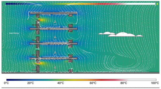 However, while solar chimneys have been relatively well researched in Western countries, research on their effectiveness in tropical climates is still nascent. Previous studies on solar chimneys have tended to focus on industrial buildings, singular buildings such as residential homes, or large public buildings [15,16]. Tan and Wong [15] determined that a solar chimney was able to naturally improve interior air speed and expedite changes in air temperature when tested in a single-storey classroom in Singapore. Hassanein and Abdel-Fadeel [17] found that the use of multiple solar chimneys, oriented in different directions, further improves air-flow rates and reduces indoor temperatures, although their effectiveness is greatest when directly facing the sun. A quicker passive reduction in indoor temperature reduces the need and the time required for cooling demand. Furthermore, Gong et al. [18] determined that users in tropical climates can accept air velocity rates ranging from 0.3 m/s to 0.9 m/s, while Roghanchi et al. [19] ascertained that 1.0–2.0 m/s is ideal for thermal comfort.