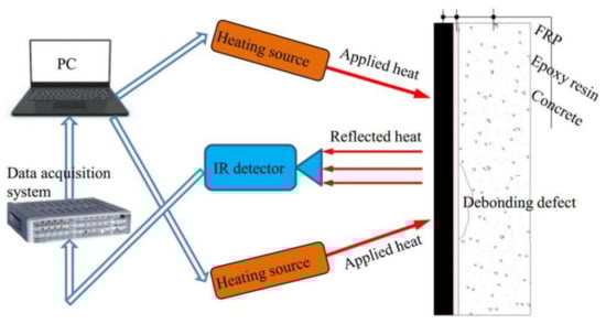 - Ying, X.; Qingyuan, W.; Congcong, L. Nondestructive debonding detection of fiber reinforced plastics strengthened concrete structure based on infrared thermal imaging with laser thermal excitation. Acta Mater. Compos. Sin. 2020, 37, 472–481. [Google Scholar]