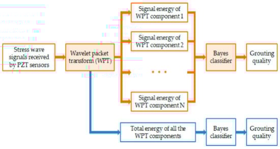 - Sun, X.; Li, D.; He, W. Grouting Quality Evaluation in Post-Tensioning Tendon Ducts Using Wavelet Packet Transform and Bayes Classifier. Sensors 2019, 19, 5372. [Google Scholar] [CrossRef] [Green Version]