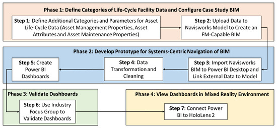 The research methodology for this paper comprises four distinct phases that include: (i) defining required categories of asset parameters for the BIM, (ii) developing a prototype implementation using a set of Power BI dashboards to visualize the model and query the imbedded data, (iii) validating usability and effectiveness of dashboards using a focus group of industry facility experts, and (iv) testing the prototype in a mixed reality (MR) environment. The prototype is designed to allow facility owners/operators to navigate the model and query the data from a systems-centric perspective, allowing faster access to critical model information when responding to a maintenance emergency. A 3D Navisworks model for a two-story science building on the campus of a four-year academic institution is utilized for the implementation, testing, and validation of the proof-of-concept application.