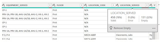 If a column has any error value, the user can use the “Replace Errors” function to correct the value. Similarly, empty column values can be replaced with a user-defined value using the “Replace Values” option. Data transformation and scrubbing steps are also applied to the “Asset Management Properties” and “Asset Attributes” query tables.