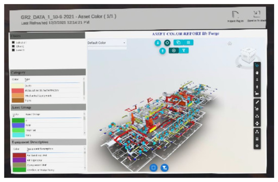 During a previous study [27], the building’s 2D plans, specifications, and the Navisworks BIM for the building case study were thoroughly analyzed with a focus on the mechanical and plumbing systems. A set of data parameters grouped into two main categories (Asset Identification and Systems-Centric Properties) were defined and embedded in the BIM to allow for viewing and analyzing the model from a systems-centric perspective. The defined data parameters allowed users to filter and view model systems and components based on various criteria including components belonging to a specific system, components belonging to a specific location, components serving specific equipment, and components serving a specific location. The ability to view and isolate model systems and components using such criteria allowed for visualizing and analyzing the model from a systems-centric perspective aligned with how facility owners/operators are used to analyzing their systems to diagnose problems and respond to emergencies.