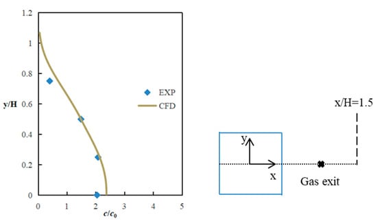 where is the pollutant release velocity. The simulation results are in good agreement with the data from the wind tunnel experiment. From the figures, the predicted values agree well with the experimental data. Therefore, the numerical calculation model can be used to calculate the numerical cases which were required for the fitting formulas of the CHTC.