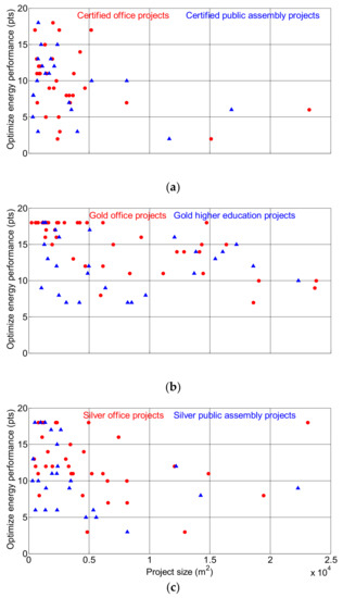 - In two out of three cases, the EAc7 (Optimize Energy Performance) credit achievement in LEED-NC v4 projects was better in office-type projects than in higher-education-type projects at the gold level of certification, and in office-type projects than in public-type projects at the silver level.