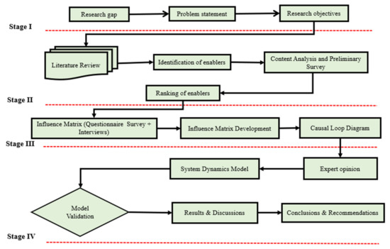 To achieve the objectives set in the current study, this research was divided into four stages, as demonstrated in Figure 1. In Stage I, the initial scrutiny of the literature was conducted. After scrutinizing the literature, the research gap was identified, which led to the development of the problem statement. Research objectives were formulated based on the problem statement as presented in the introduction section of the current study.