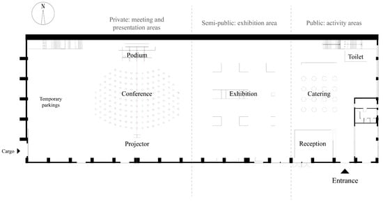 In response to the conference’s functional requirements, the hall was divided into three main areas based on different privacy levels: a public area with registration desks and a catering area; a semi-public exhibition area; and a relatively intimate auditorium for lectures and discussions (